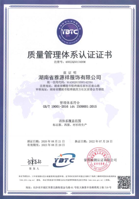 1、企業(yè)概況 湖南省雅源祥服飾有限公司地處湘贛邊境素有瓷城之稱的醴陵郊區(qū),企業(yè)創(chuàng)建于1995年,是行政執(zhí)法制服、被裝的生產(chǎn)企業(yè)。2、組織機構(gòu) 跟隨改革開放的步伐,我公司不斷發(fā)展壯大,公司董事會下設總經(jīng)理辦公室、生產(chǎn)部、技術(shù)部、質(zhì)檢部、財務部、采購部、業(yè)務部等部門,下設有流水線西服生產(chǎn)車間、標志服生產(chǎn)車間、襯衣生產(chǎn)車間、... [更多]